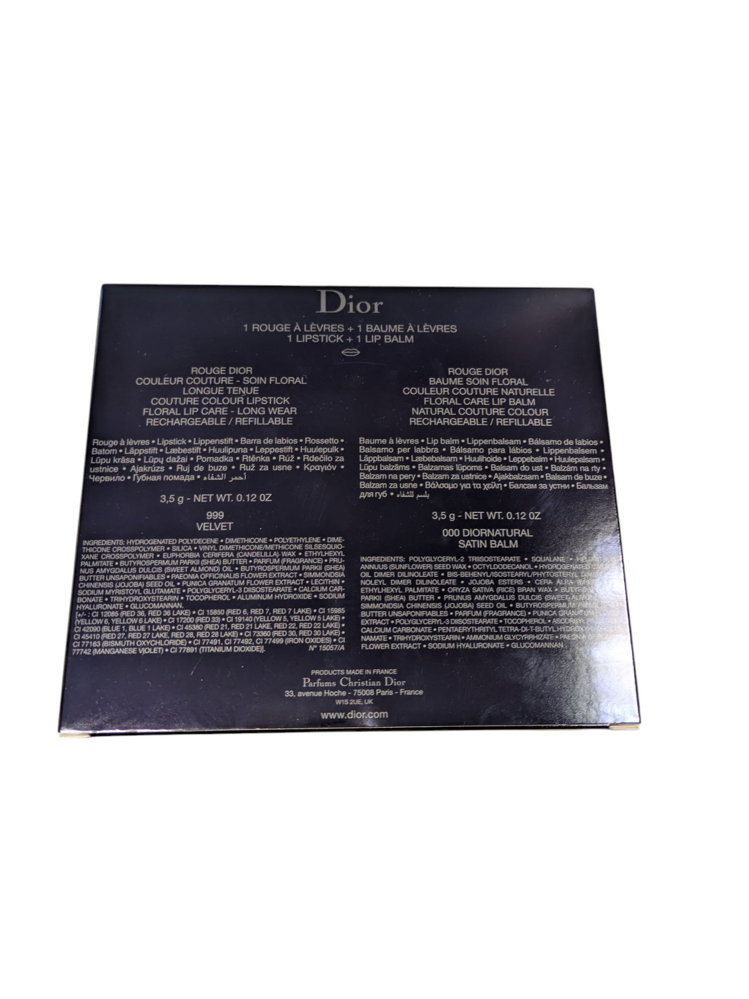 Lipstick 999 Velvet & Lipstick 000 Diornatural Satin Balm